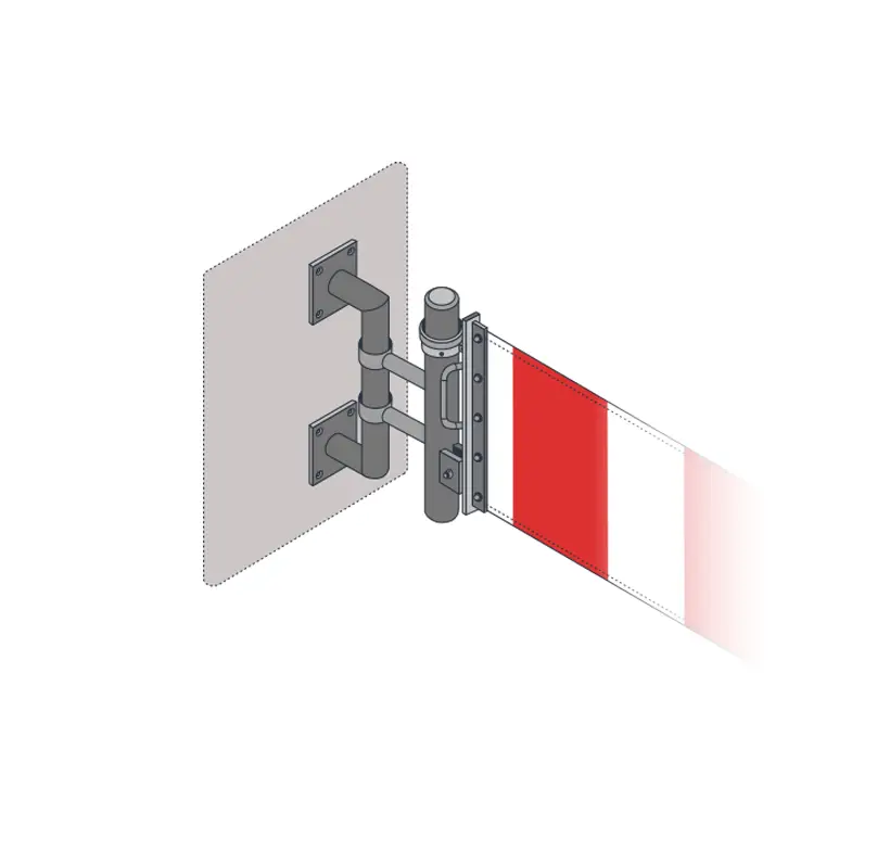 La fascia rossa e bianca è a doghe in acciaio inossidabile. Si deforma sotto l'azione di un veicolo e si rompe in corrispondenza dell'attacco in caso di impatto.